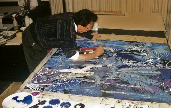 回頭分析自己的作品,丁紹光覺得,《生命之源》之所以有震撼力,首先就是因為巨大的面積。但畢竟是300多平方米,面積大,還不能空。所以,其感染力進而有賴于線條的結構。在這件壁畫中,線條是形式,也是邏輯,是串聯(lián),也是內(nèi)容本身。在施工之前,丁紹光畫了一張素描給施工方。素描所用的線條,極細密,在他畫畫的時候從來沒畫過那么細的線條。因為考慮到要放大100倍之后放到玻璃上去,線條一旦粗了,別人就不知道該用什么顏色去填這些線條。