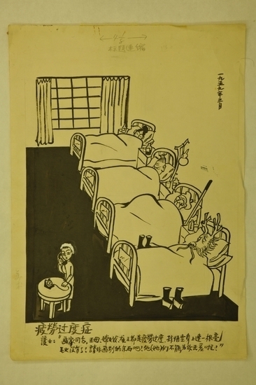 華君武的漫畫對時(shí)代和人性有著入木三分的認(rèn)識,圖為1959年的《疲勞過度癥》