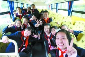 昨日,渝北區(qū)的孩子們坐在新型安全校車(chē)?yán)矬w驗(yàn)時(shí)非常激動(dòng)
