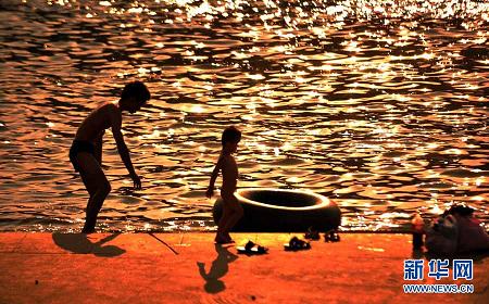2010年8月4日 “光陰”的故事:40度高溫下的長(zhǎng)沙生活剪影 湘江邊的泳者(8月4日攝)。當(dāng)日,湖南省會(huì)長(zhǎng)沙最高溫度達(dá)到40℃ ,為今年入夏以來(lái)的最高氣溫,湖南省氣象臺(tái)已發(fā)布今年首個(gè)高溫紅色預(yù)警信號(hào).